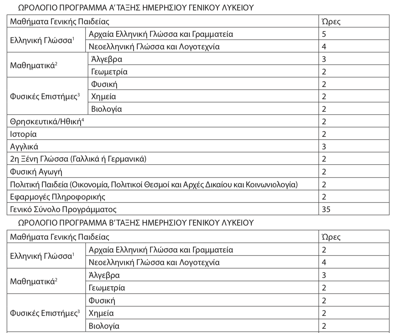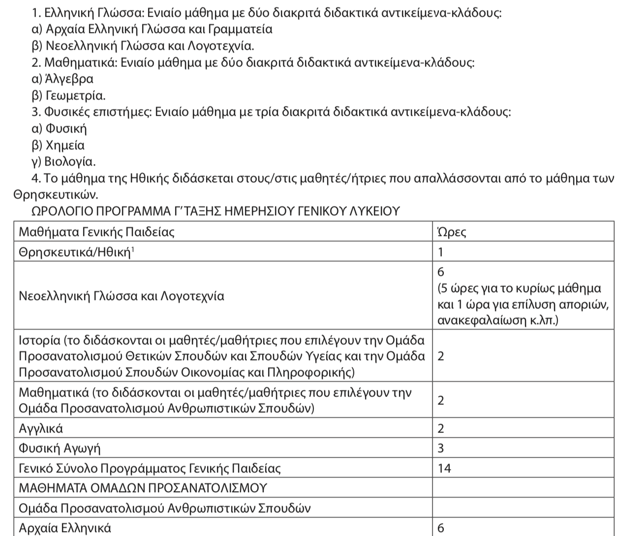 Καθορίστηκε το νέο ωρολόγιο πρόγραμμα των μαθημάτων των Α’, Β’ και Γ’ τάξεων του Ημερήσιου Γενικού Λυκείου , το οποίο θα ισχύσει από το επόμενο σχολικό έτος 2026-27