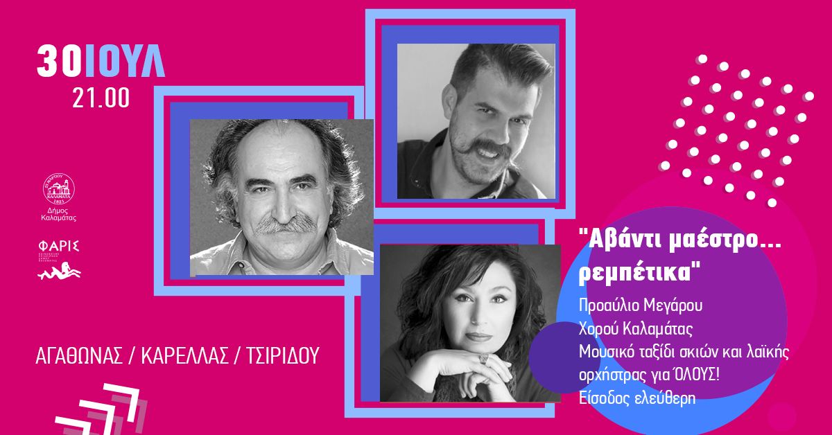 ΑΒΑΝΤΙ ΜΑΕΣΤΡΟ… ΡΕΜΠΕΤΙΚΑ! ΑΓΑΘΩΝΑΣ │ ΗΛΙΑΣ ΚΑΡΕΛΛΑΣ│ ΚΑΤΕΡΙΝΑ ΤΣΙΡΙΔΟΥΈΝΑ ΜΟΥΣΙΚΟ ΤΑΞΙΔΙ ΣΚΙΩΝ ΚΑΙ ΛΑΪΚΗΣ ΟΡΧΗΣΤΡΑΣ ΓΙΑ ΌΛΟΥΣ!